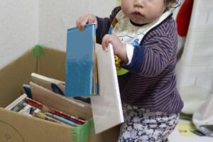 絵本に少し興味がなくても移動させたがるため、